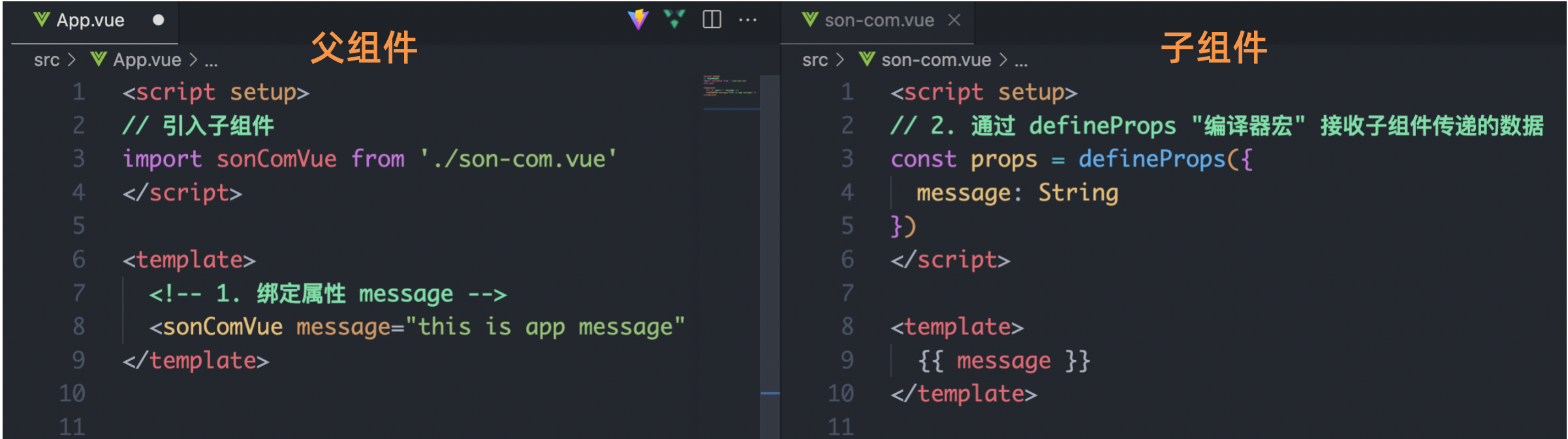 - 父组件中给子组件绑定属性