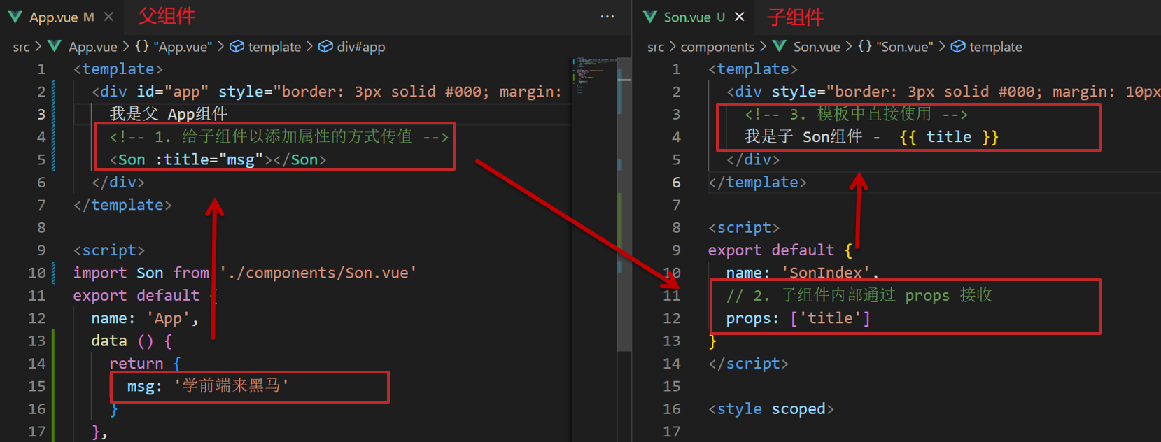 - 父组件通过 props 将数据传递给子组件