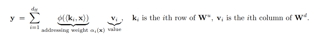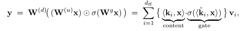 在这里,Wu可以视为key, 而Wd可以视为value, 非线性决定寻址的稀疏性/选择性;如ReLU可以作为硬门控,GELU可以作为软门控;