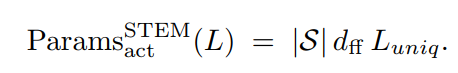 由于每层每个token只分配唯一的embedding, 所以随着序列长度L增加,看起来激活参数在随着L线性增加,但其实由于齐夫定律,这种增加是亚线性的;