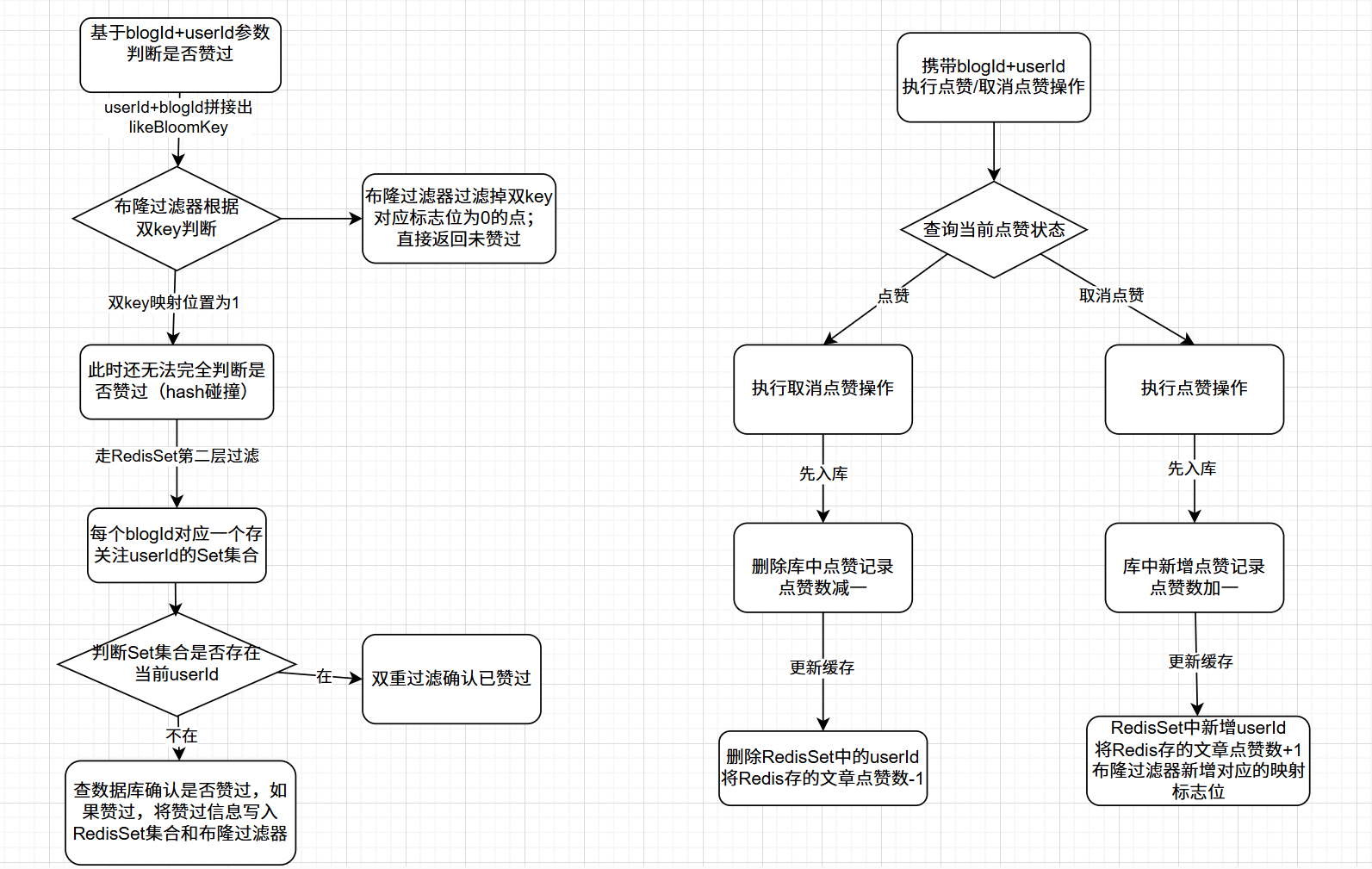 设计一个点赞操作的架构,关键在于判断是否赞过,执行点赞/取消点赞操作以及统计点赞数量。