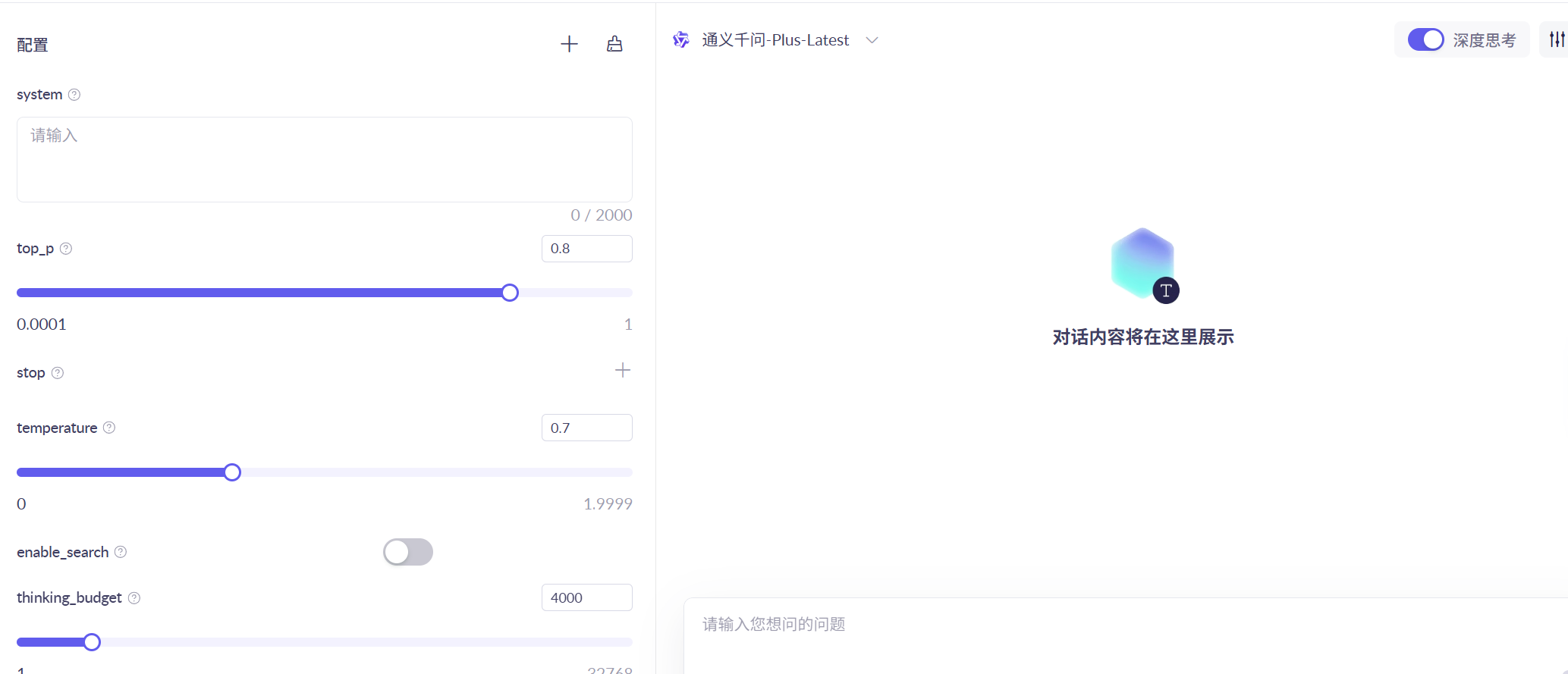 AI 大模型开发平台允许用户自主设置各种不同类型的提示词来进行调试: