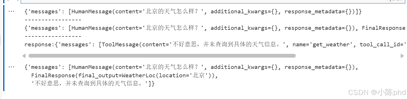 AIMessage中的tool_calls列表长度。如果模型觉得需要查外部信息(如天气),则返回True强制流向执行节点。 - natural_response :这是系统的"润色员"。它不直接返回工具执行的原始字符串(通常很乱),而是通过一个