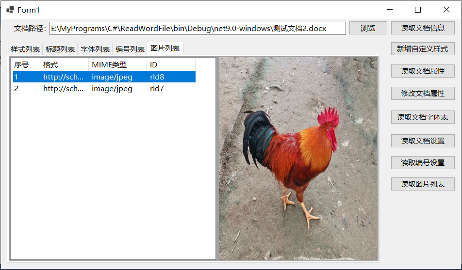 下面的代码及截图用于获取word文档的图片列表并在线浏览图片内容: