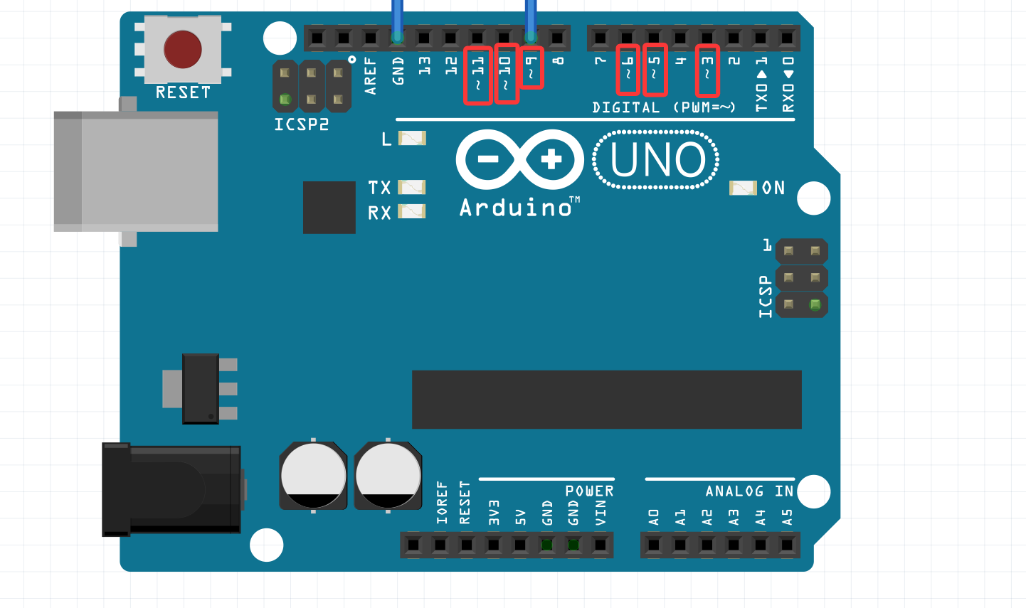 开发版中:digital区域的的,带有~的就是PWM(脉冲宽度调制)引脚