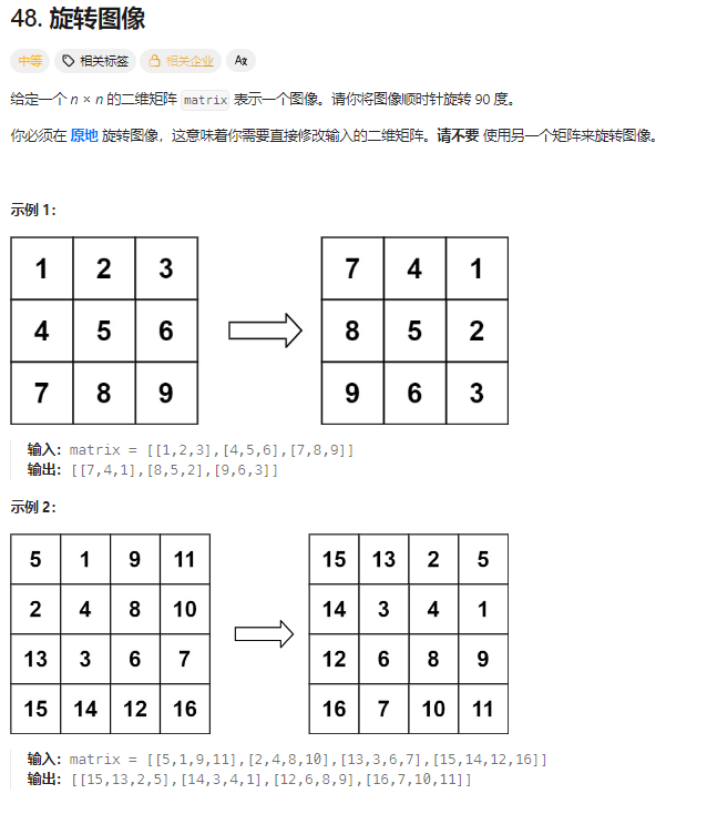 matrix[i][j], matrix[j][i] = matrix[j][i], matrix[i][j] # 与下半部分翻转
