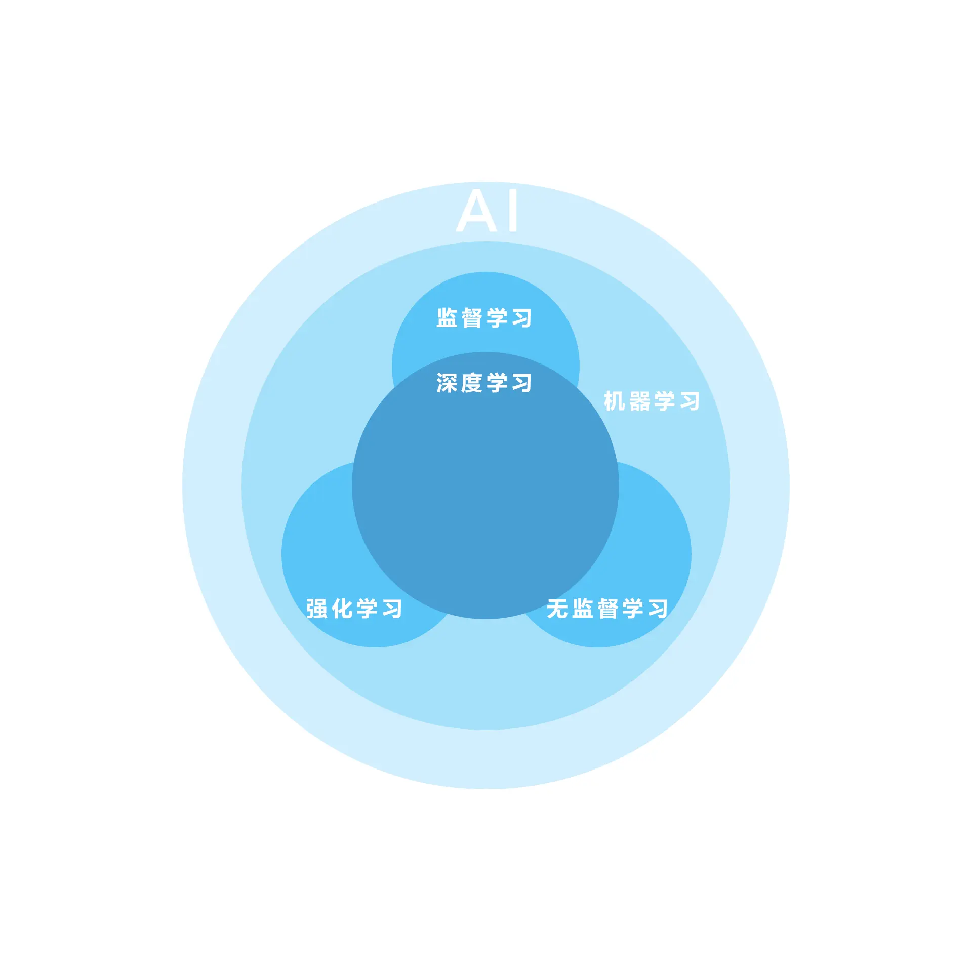 最外层(最大的圆):人工智能(Artificial Intelligence, AI)