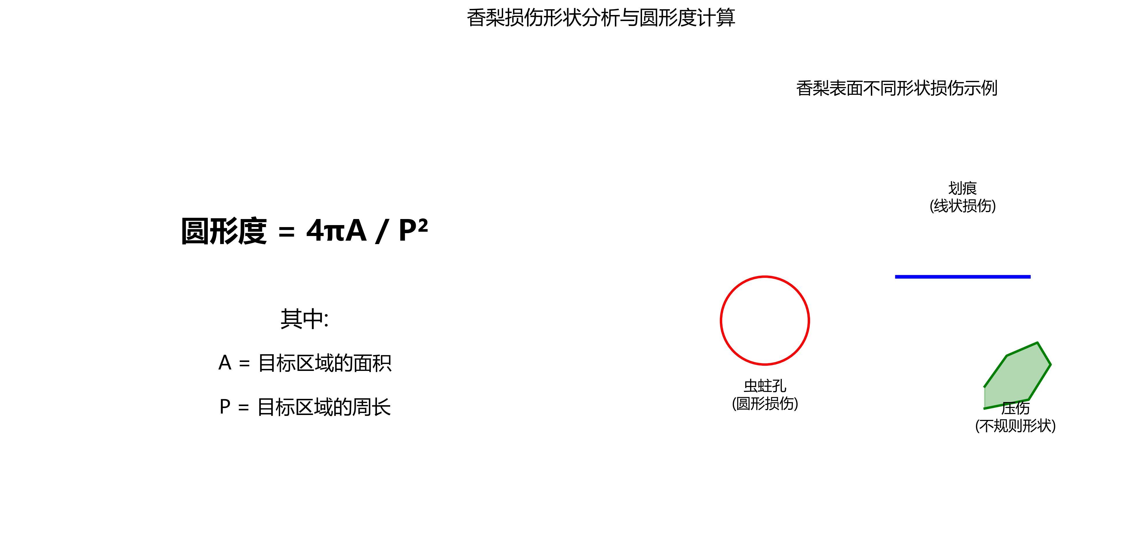 这里A是目标区域的面积,P是目标区域的周长。这个公式看起来简单,但能告诉我们很多关于损伤形状的信息!想象一下,香梨表面的损伤可能是圆形的(如虫蛀孔)、线状的(如划痕)或不规则形状的(如压伤)。通过计算圆形度,我们可以量化这些形状差异,为损伤分类提供重要依据。特别是在区分机械损伤和生物损伤时,形状特征往往能发挥关键作用!