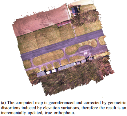 - Map2DFusion:由 Bu 等人提出的开源软件,采用先进的视觉 SLAM 替代传统拼接流水线中的图像对齐模块,通过成熟的框架实现闭环检测、全局优化和复杂视觉环境下的鲁棒跟踪。但该方案未考虑地表高程信息,仍存在视觉畸变问题。