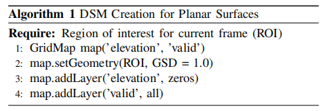 该阶段的核心任务是生成数字表面模型(DSM),可表示为简单平面或 2.5D 高程图,同时还能重建表面法向量和观测角度。