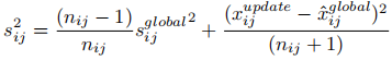 低于设定阈值,更新方差和平均值层,并增加该单元的观测次数;