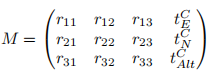 - 位姿表示:经过尺度求解和视觉轨迹与 GNSS 轨迹的对齐后,发布所有帧的位姿,其矩阵形式为: