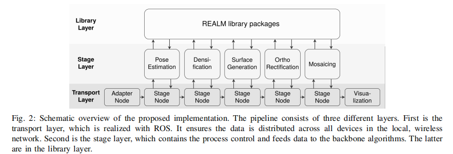 - Hinzmann 等人的框架:首次实现了从姿态估计、稠密场景重建到正射镶嵌图生成的全流程实时处理,但未采用最先进的视觉 SLAM 进行姿态估计,也未提供集成其他稠密重建实现的接口。