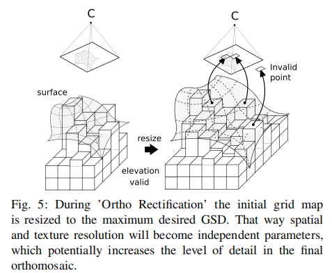 - 将包含高程和有效性层的输入网格地图缩放到期望的正射影像地面采样距离;