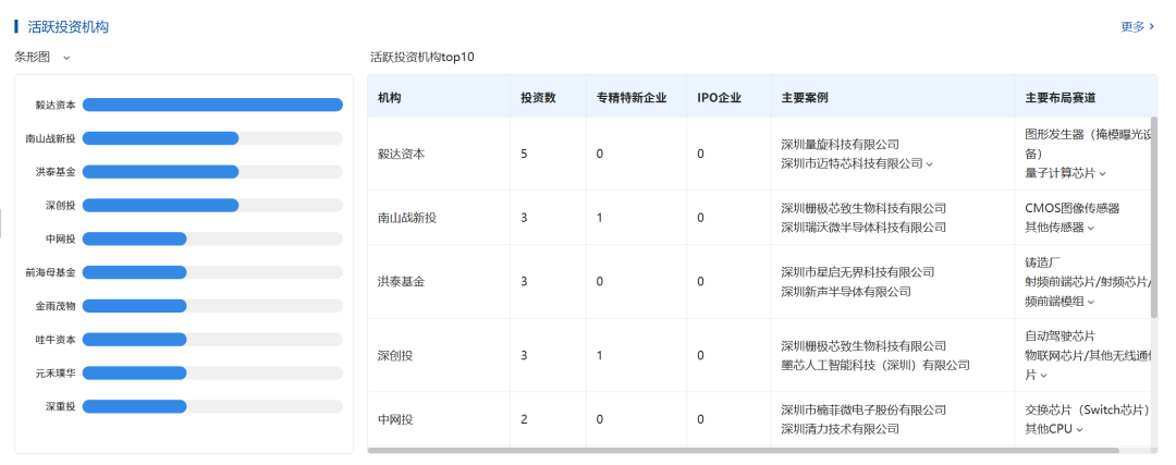 粤港澳大湾区(以深圳为核心)的融资活力高度依赖头部投资机构的精准布局,深圳10大活跃投资机构,聚焦特色芯片、先进材料、封装测试三大核心赛道,推动技术落地与产业链协同,典型布局如下: 深创投与深重投重点投向芯片设计、先进封装及关键零部件领域,助力龙头企业突破先进制程装备瓶颈,同时孵化细分赛道高潜质团队。深重投依托产业资源,推动基金向通用算力芯片、新型存储等领域倾斜,导入生态圈资源为企业提供应用场景支撑,强化"耐心资本+产业赋能"优势。此外,深圳先进制造业供应链创新服务平台与赛米基金形成协同,为企业提供跨境金融、资源集采等服务,推动区域半导体产业升级,进一步巩固"应用牵引、生态协同"的区域特色。