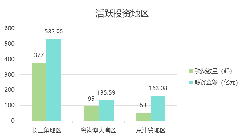 地域维度上,半导体融资呈现"核心集聚、多点支撑"的格局,长三角、粤港澳大湾区、京津冀三大区域成为资本布局的核心阵地,合计融资事件占比超80%,形成各有侧重、协同互补的差异化发展生态。其中,长三角地区以377起融资事件、532.05亿元融资金额稳居首位,凭借全产业链优势成为行业融资的"主战场";粤港澳大湾区以95起事件、135.59亿元额度紧随其后,京津冀地区则以53起事件、163.08亿元额度展现出高额度均值的特点。