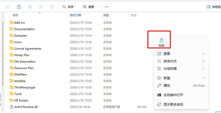 来到刚刚选择安装文件的位置,右键粘贴刚刚的文件!!