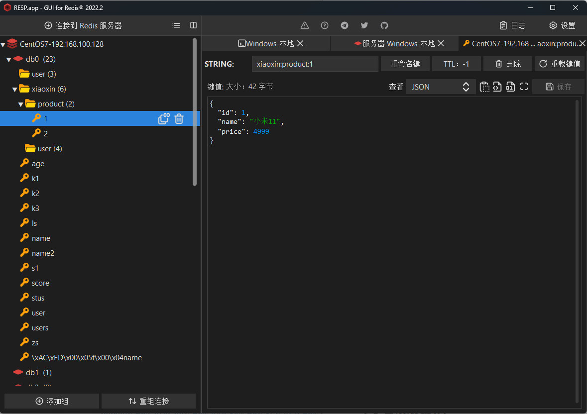 Redis的key允许多个单词用 : 分隔,形成层级结构。例如: