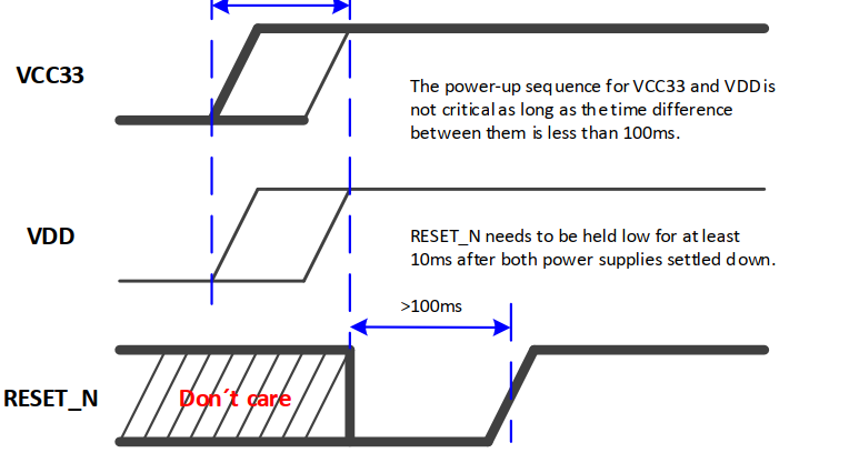 由于EC 通过I2C对此芯片访问时报错,首先查看复位信号是否正常。复位要求大于100ms的低电平,而后拉高。