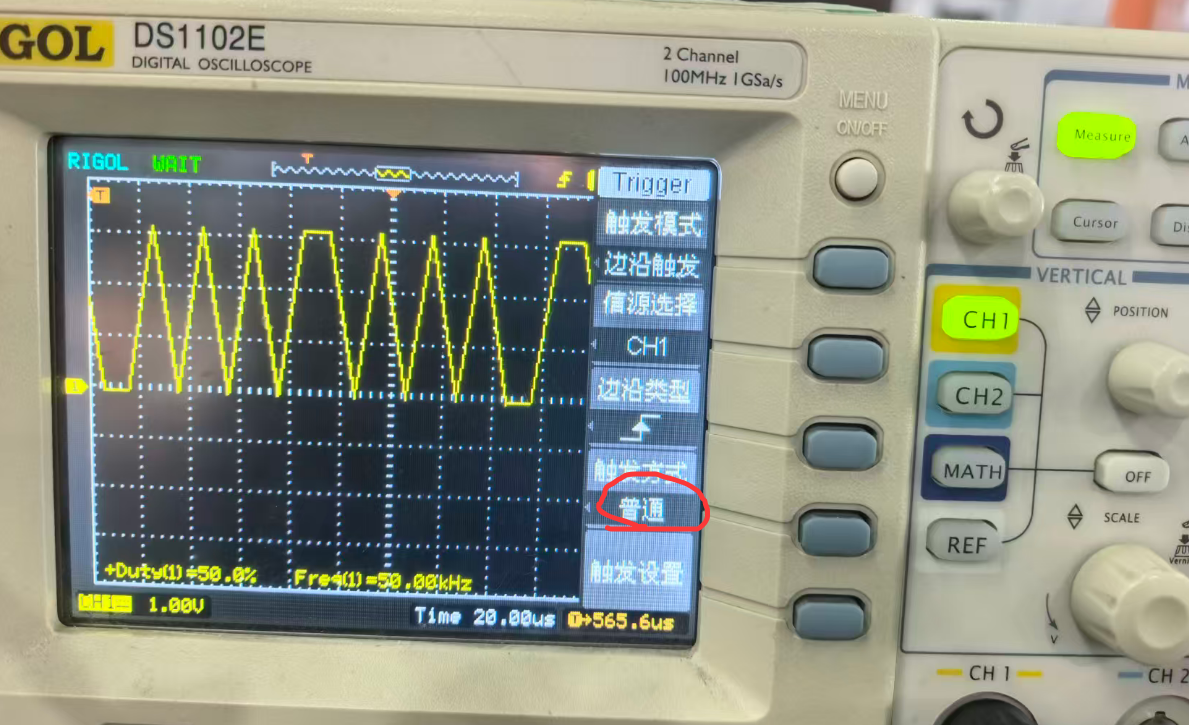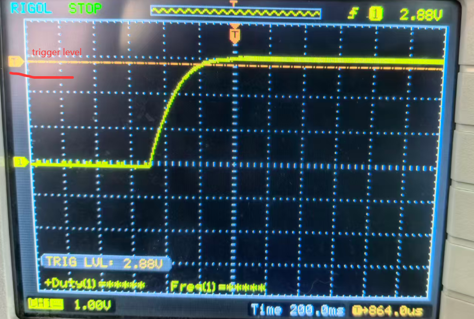 2) 设置触发电平为近3V ,如下图所示T线 trigger level。主要防止探针点击测量点时手抖误触发。
