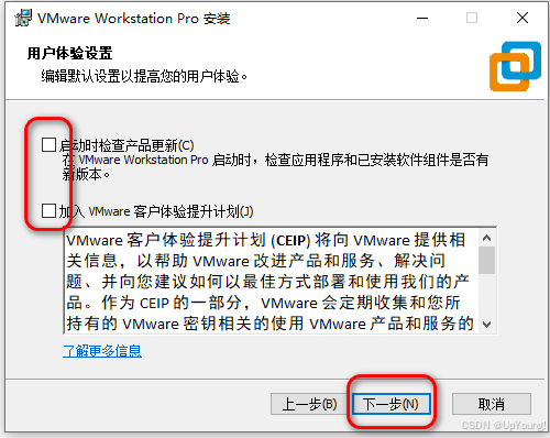 取消勾选"加入VMware客户体验改进计划"