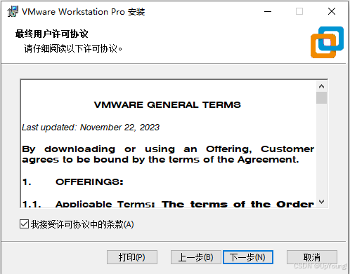 仔细阅读最终用户许可协议勾选"我接受许可协议中的条款"选项