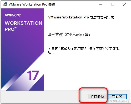 点击"完成"退出安装向导,首次启动时选择"许可证"选项