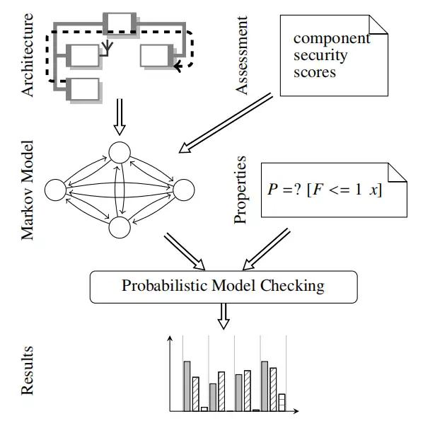 借助完整的马尔可夫模型和定义的属性,概率模型检测器可得出所分析架构的安全值。