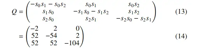在根据架构创建 CTMC 模型并按照上一节的讨论分配转移率后,需要定义分析目标。这些目标被定义为模型的属性。CTMC 模型的一个常见评估属性是稳态分析,通过传统的矩阵运算可以计算出在任意采样时间点处于每个状态的概率。以图 3 中的示例为例,假设速率 φ₃G=φ_mc=52(每周一次),η₃G=η_mc=2(每两年一次),则转移率矩阵为: