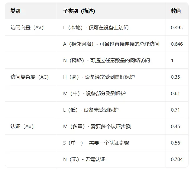 表 1、CVSS 可利用性子评分的类别及其在汽车网络中的解释