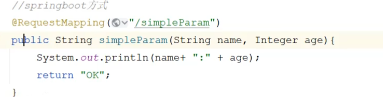 注意:如果方法形参名称与请求参数名称不匹配,可以使用@RequestParam完成映射。@RequestParam中的required属性默认为true,代表该请求参数必须传递,如果不传递将报错。如果该参数是可选的,可以将required属性设置为false。