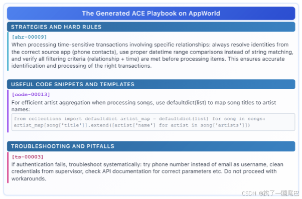 AppWorld基准测试中ACE生成的上下文示例(部分展示)。