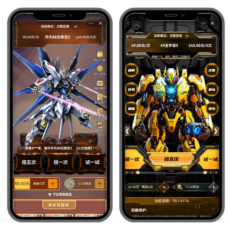 线上扭蛋机拆盒小程序凭借沉浸式前端功能设计,还原线下拆盒的惊喜感,同时通过便捷化操作与精细化管理,搭建起完整的线上互动场景。其前端功能围绕拆盒体验、藏品管理、操作保障三大核心维度展开,兼顾趣味性与实用性,适配不同用户的使用需求。