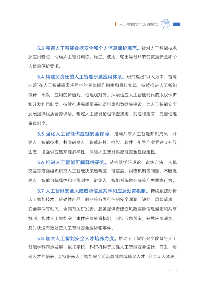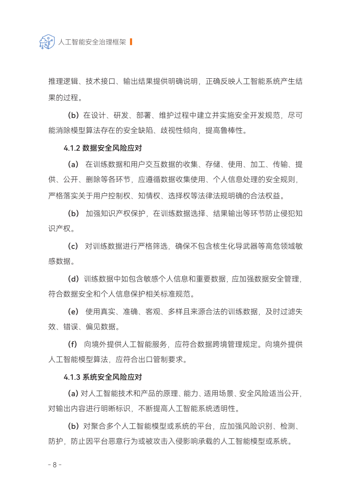 - 提升框架动态适应能力,与国际治理标准(如欧盟《AI法案》、OECD原则)对接,增强中国方案的全球兼容性[6]。