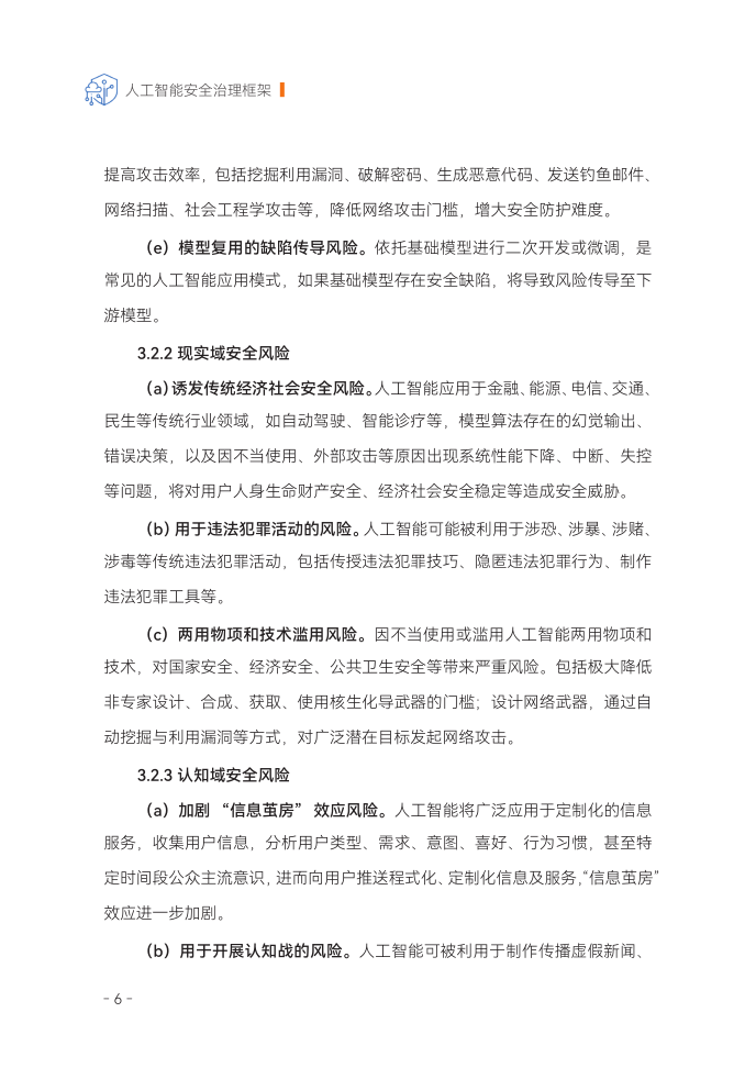 - 新增"应用衍生安全风险":关注AI大规模应用对社会(如就业结构、资源消耗)和环境(如偏见放大、教育冲击)的次生影响[11][14]。