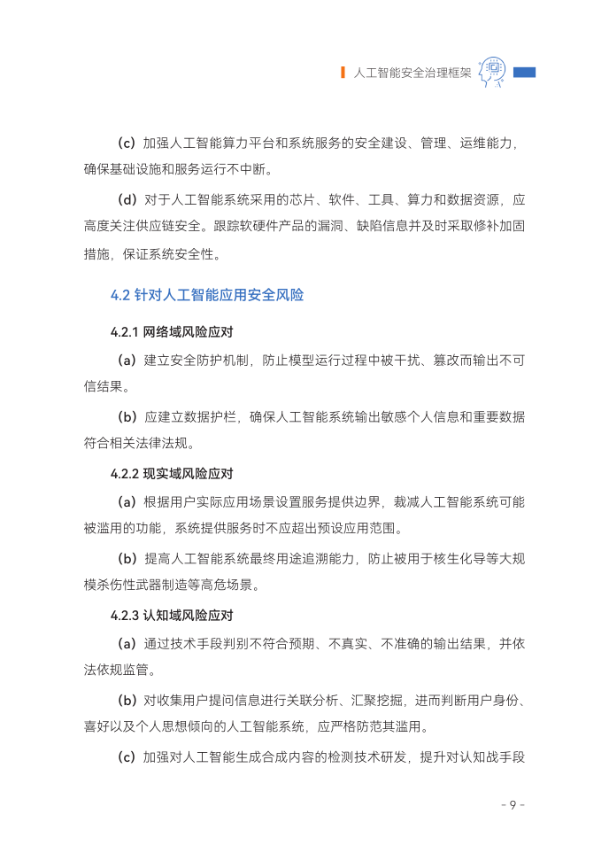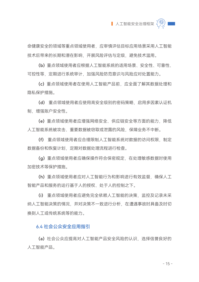 - 智能体部署需通过安全评估,防范自主决策风险[16]。