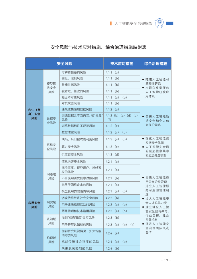 - 全生命周期管理:覆盖研发、部署、运营、使用各环节,提出差异化安全指南[15][17]。
