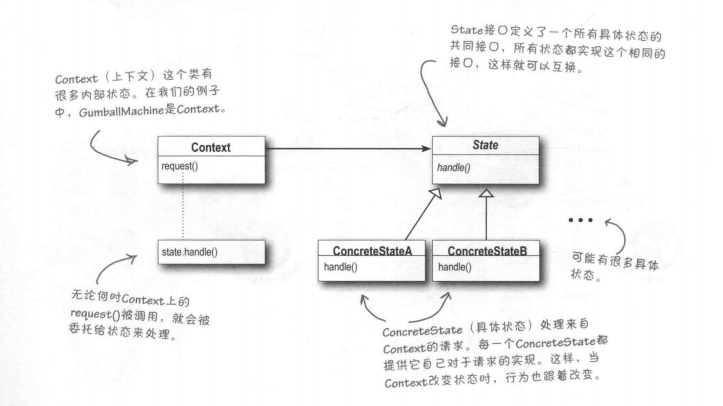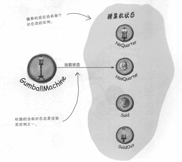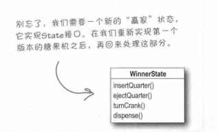 - 通过添加新的状态类(我们马上就这样做),使得每一个状态对修改关闭,糖果机对扩展开放。