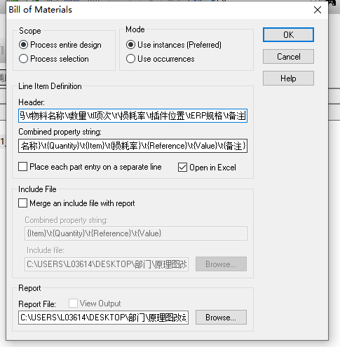 可以根据原有宏修改,导出自己想要的参数的BOM