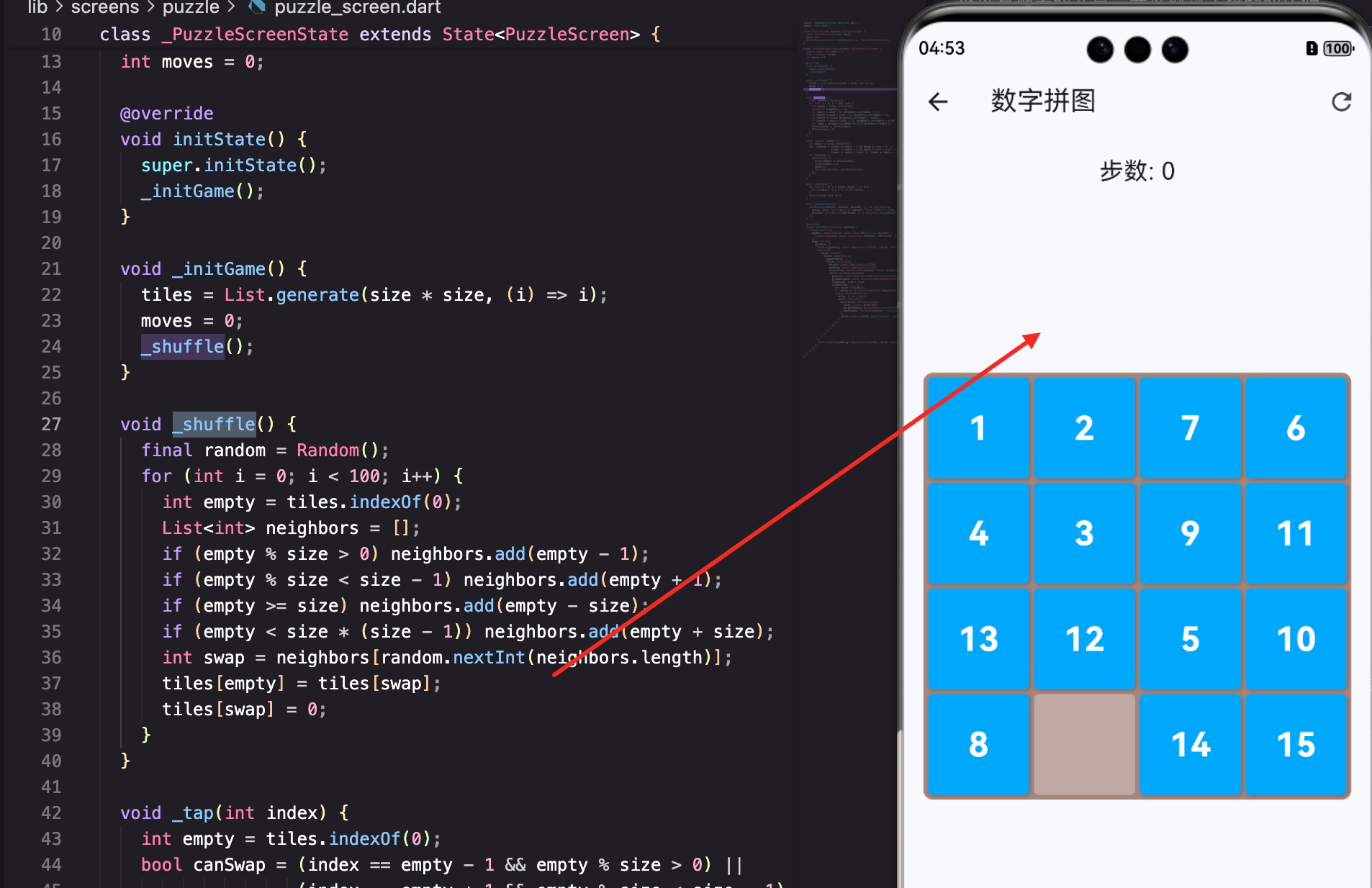 random.nextInt(neighbors.length)生成0到neighbors.length-1的随机整数neighbors[swap]取出随机选中的相邻格子索引- 把相邻格子的值移到空格位置