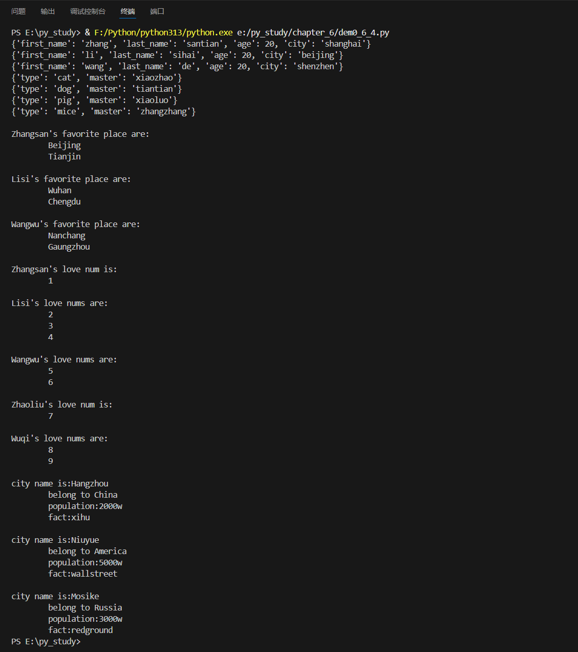 people_1 = {'first_name':'zhang','last_name':'santian','age':20,'city':'shanghai'} #定义一个字典