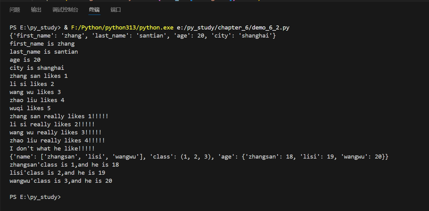 f"{message['name'][2]}'class is {message['class'][2]},and he is {message['age']['wangwu']}\n")