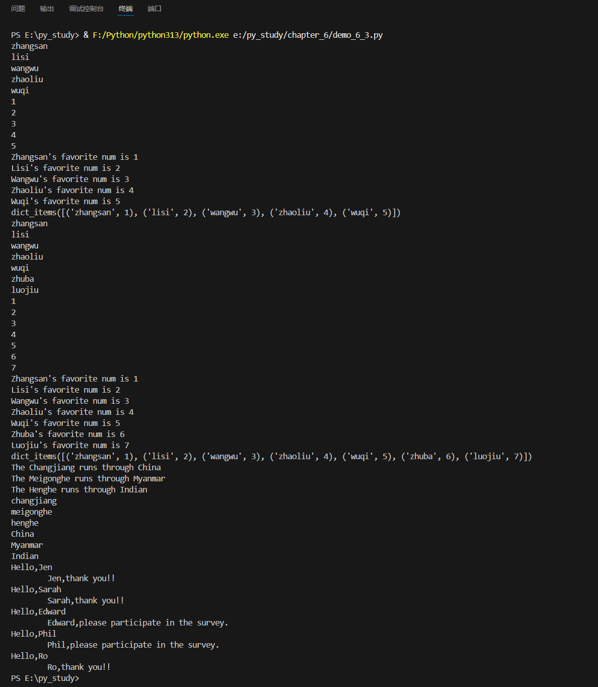rivers = {'changjiang':'China','meigonghe':'Myanmar','henghe':'Indian'}