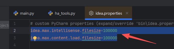 这是因为pycharm的默认限制文件大小是2.56m,超出这个大小,文件洞察就不起作用了,而halcon包里面方法包 超过这个大小了 所以就不自动提示了,修改一下大小限制就好了