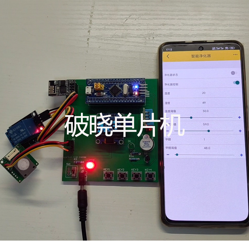1、环境采集:DHT11温湿度传感器采集温度和湿度、甲醛传感器检测甲醛是否正常情况。