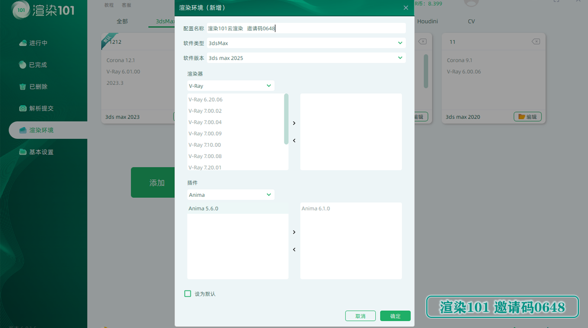 通过渲染101客户端提交任务时,可进行如下配置: