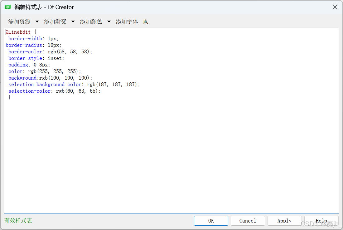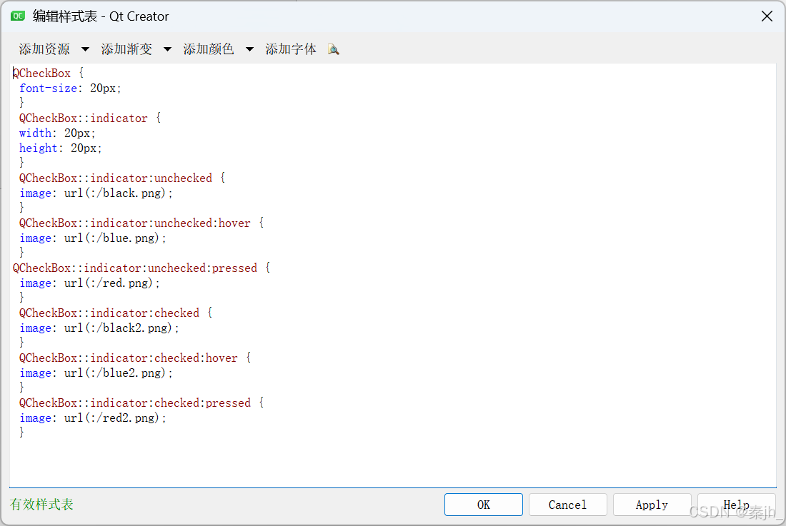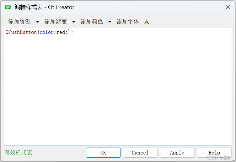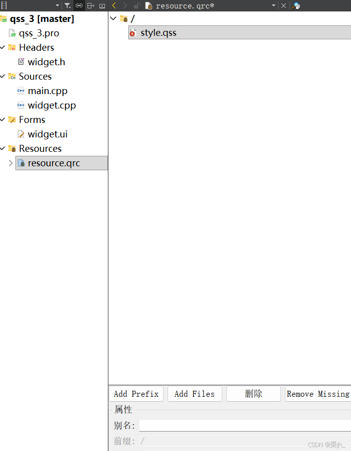 创建 style.qss ⽂件,并添加到 resource.qrc 中.