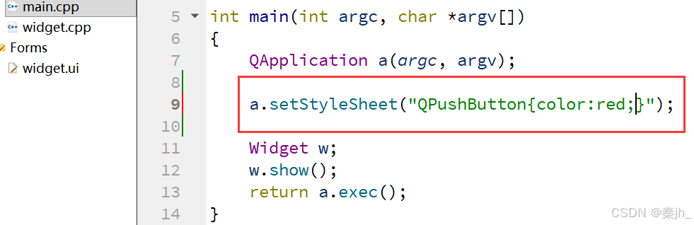 上述代码都是把样式通过硬编码的⽅式设置的.这样使QSS代码和C++代码耦合在⼀起了,并不⽅便代 码的维护