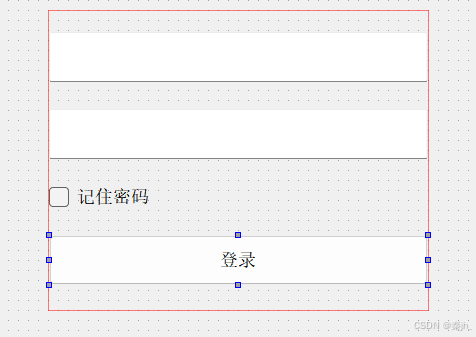- 两个输⼊框和按钮的minimumHeight均设置为50.(元素在布局管理器中⽆法直接设置width和 height, 使⽤minimumWidth和minimumHeight代替,此时垂直⽅向的sizePolicy要设为fixed).