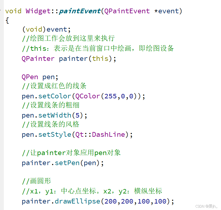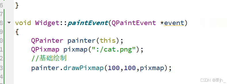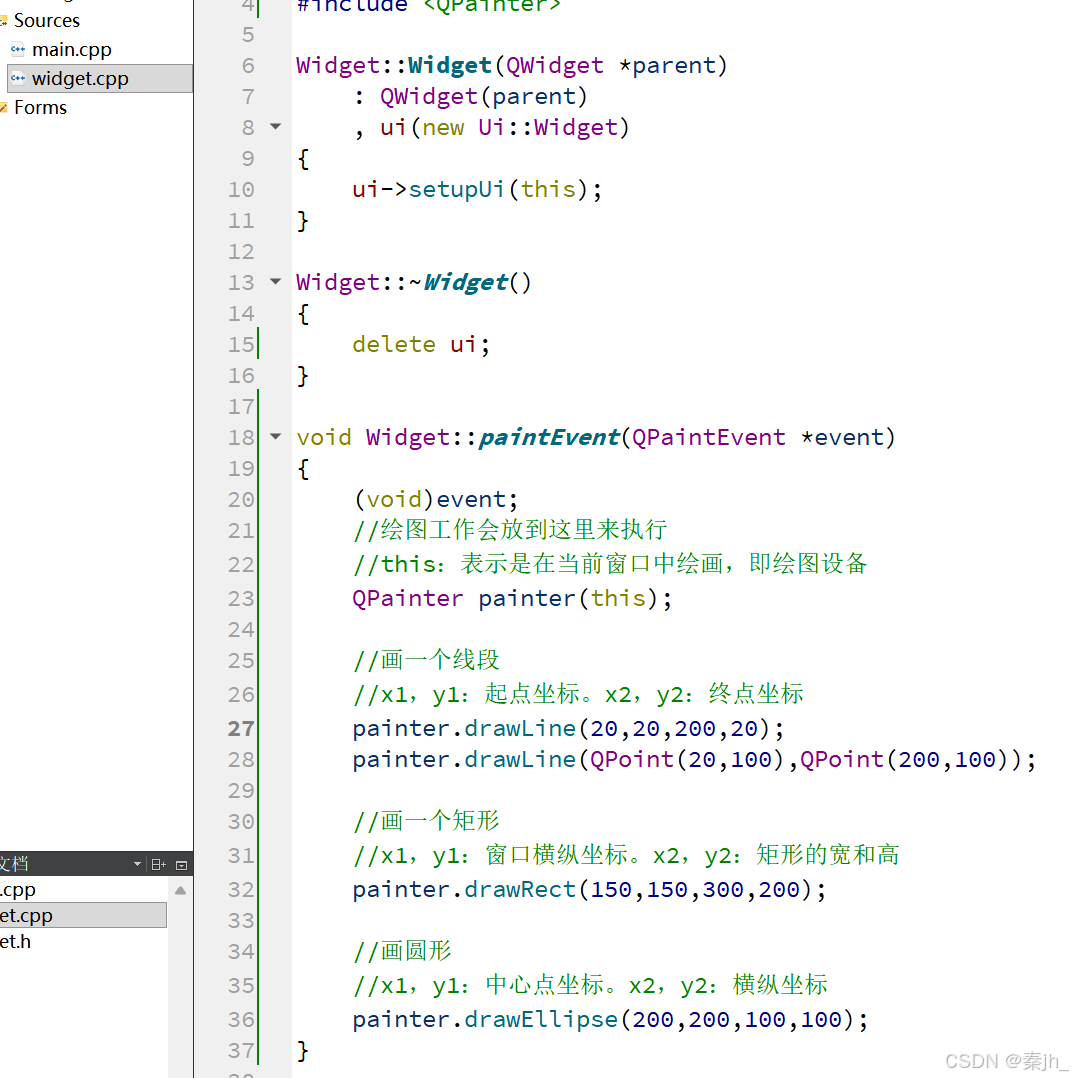 在"widget.cpp"⽂件中重写paintEvent()⽅法;